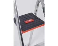 | Eigenschap | Antislip kunststofvoeten, Emmerhaak, Staal-platform met antislip ribbels, Geribbelde aluminium tredes |